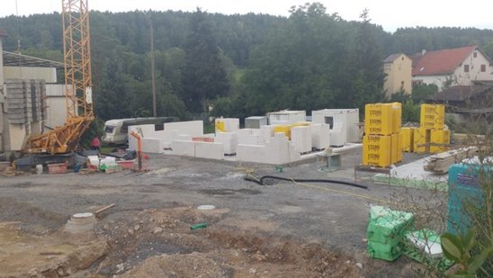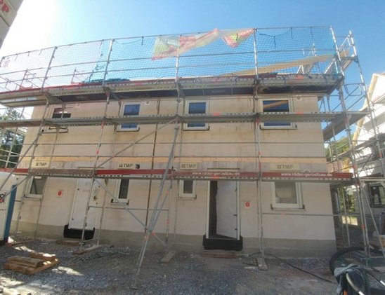 Das geteilte Grundstück und unterschiedliche Baufirmen auf dem Gelände hatten den Baubeginn zunächst verzögert, aber als die Bodenplatte endlich gegossen war, lief der Hausbau bei Stefanie und Christian wie am Schnürchen.